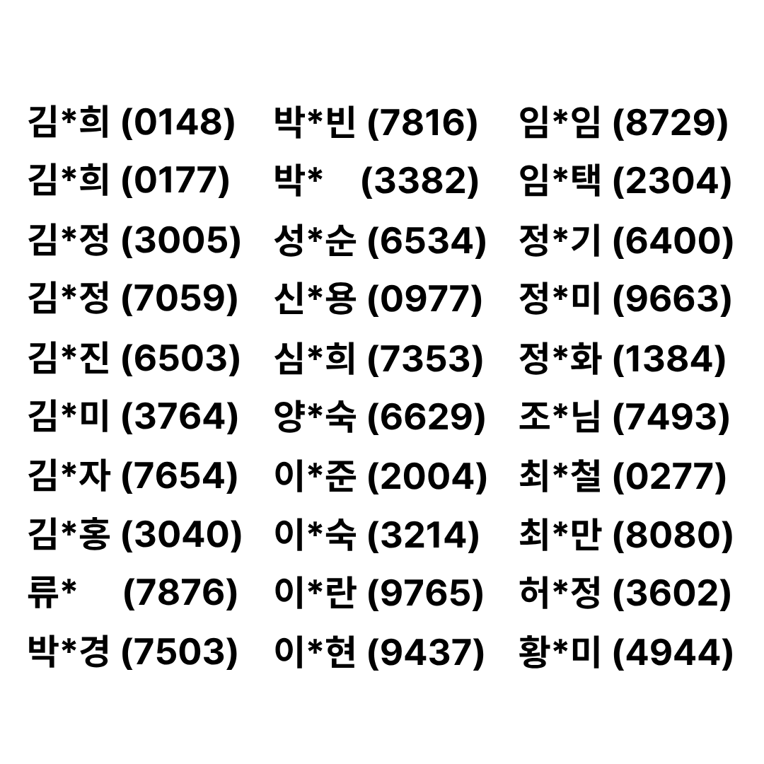 ※ 선정자 명단은 가나다순이며, 개인정보 보호를 위해 일부 정보만 공개합니다.