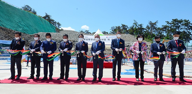 20일 영광군 홍농읍 현장에서 열린 SRF(고형연료제품) 발전소 건설공사 착공식 및 안전기원제에서 김상풍 영광열병합발전㈜ 회장과 남성숙 광주매일신문 사장 등이 참석한 가운데 테이프 커팅식을 진행하고 있다.